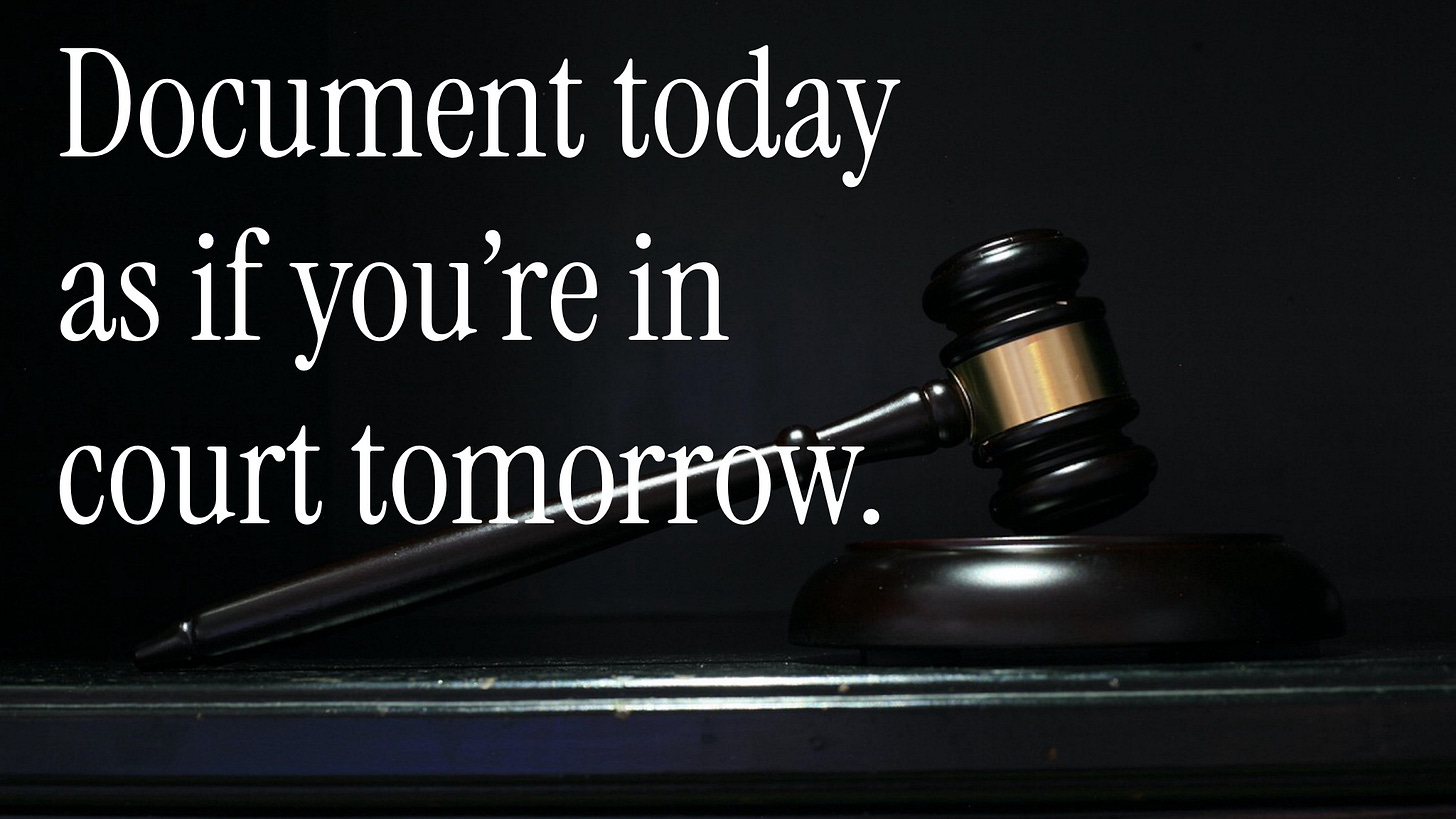 When our documentation is detailed and answers questions someone might have about what happened, a complainant will move on to someone whose notes are weak and have gaps.